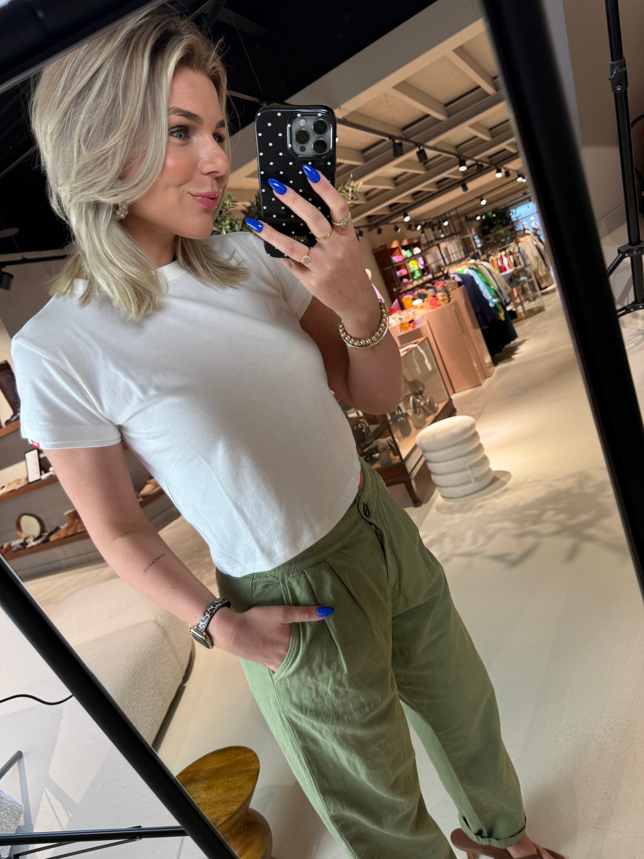 Rixt draagt maat S en is 1.77 cm
