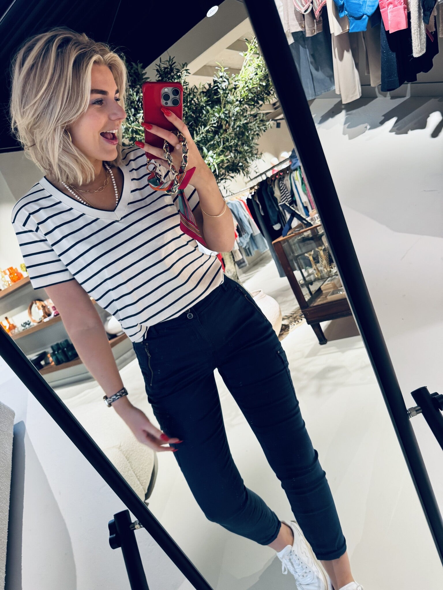 Deze broek heeft een normale pasvorm en elastiek in het midden van de taille. De broek is afgewerkt met klepzakken aan beide zijkanten en is zeer comfortabel om te dragen. Wij zouden hem stylen met een oversized shirt of een ingestopt statement T-shirt.