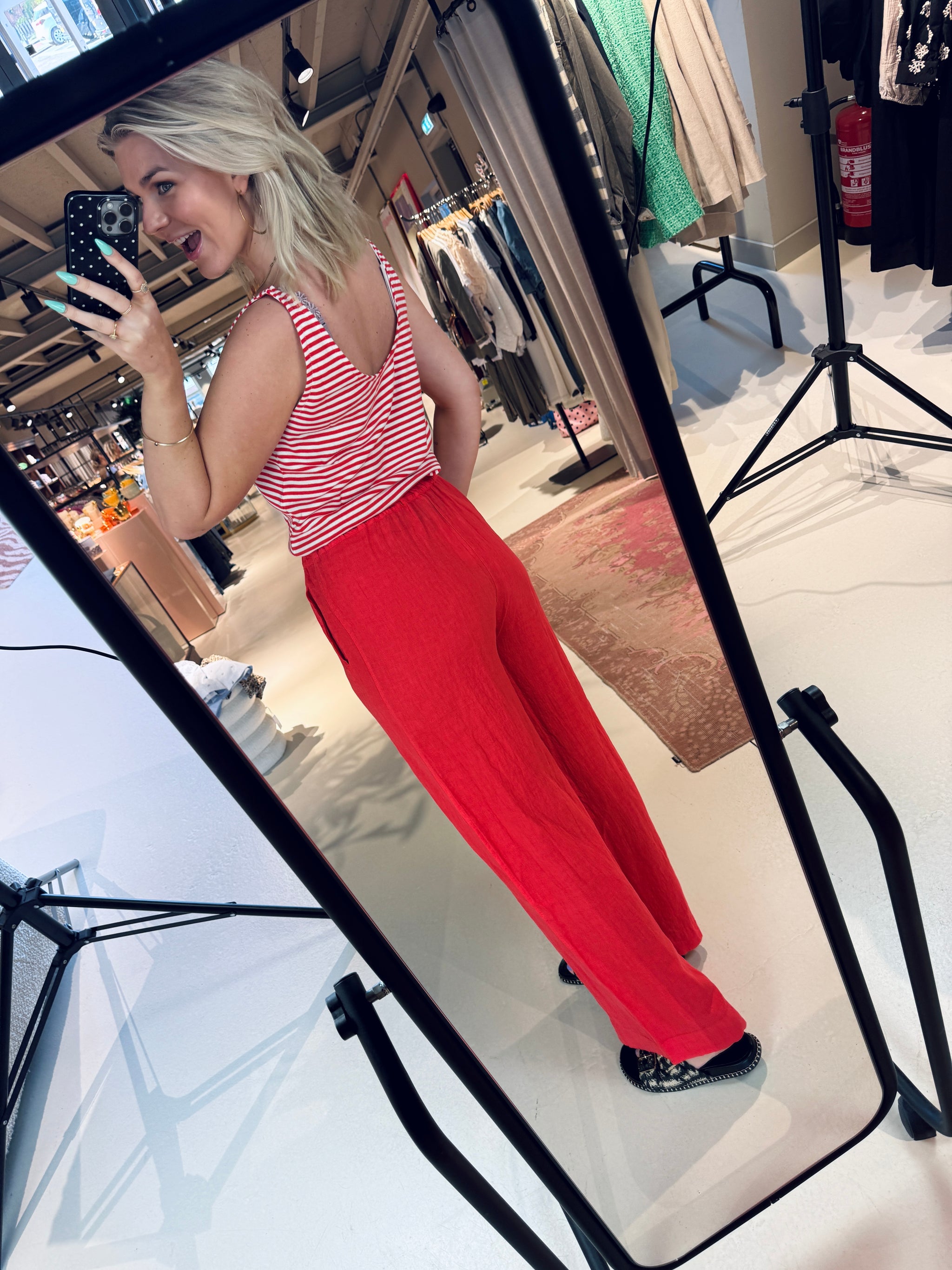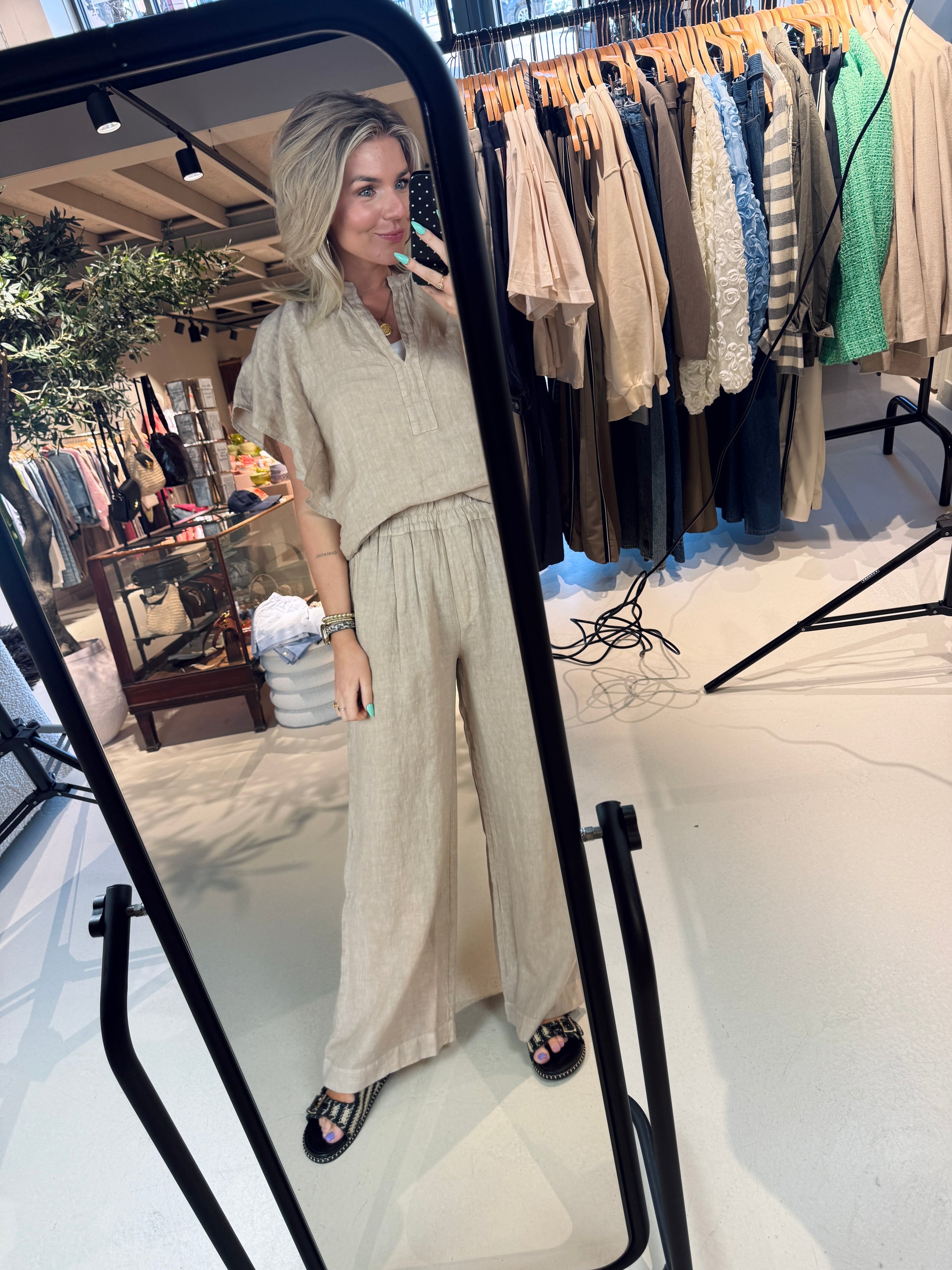 Ontdek het comfort van de benji linen pants, een casual broek met een normale pasvorm en een hoge taille die je figuur mooi omlijnt. Gemaakt van luchtig linnen, perfect voor warme dagen. De lange broeklengte en handige zijzakken maken deze broek een veelzijdige toevoeging aan je garderobe. ideaal voor ontspannen dagen vol stijl.