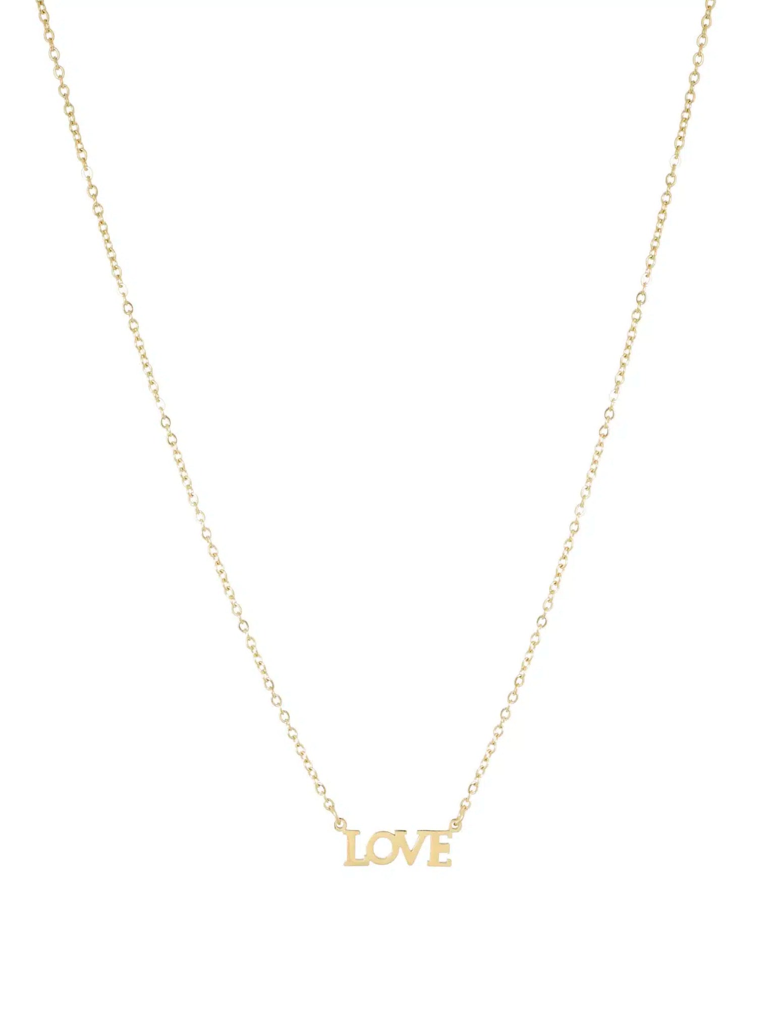 Korte fijne ketting met "LOVE" hanger. De LOVE hanger is 2,5cm breed en 0.6 cm hoog. De lengte van de ketting is 18 inch. In een prachtige longlasting stainless steel kwaliteit.