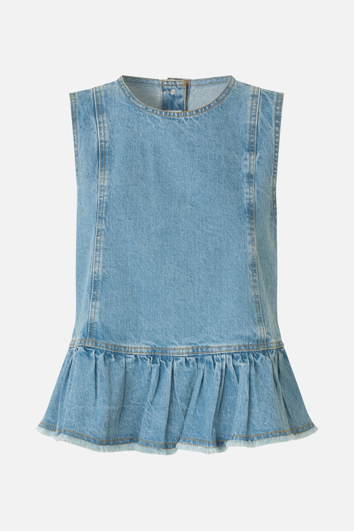 De Madinel Top is een mouwloze peplumtop van biologisch katoen. Het model heeft een relaxte pasvorm, met ruches aan de zoom en een knoopsluiting aan de achterkant. Deze top past perfect bij de Napolen Jeans of de Sigge Skirt.
