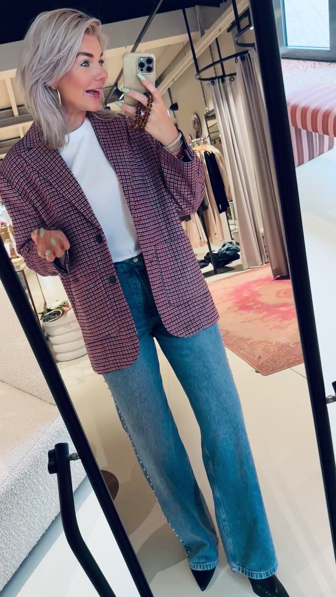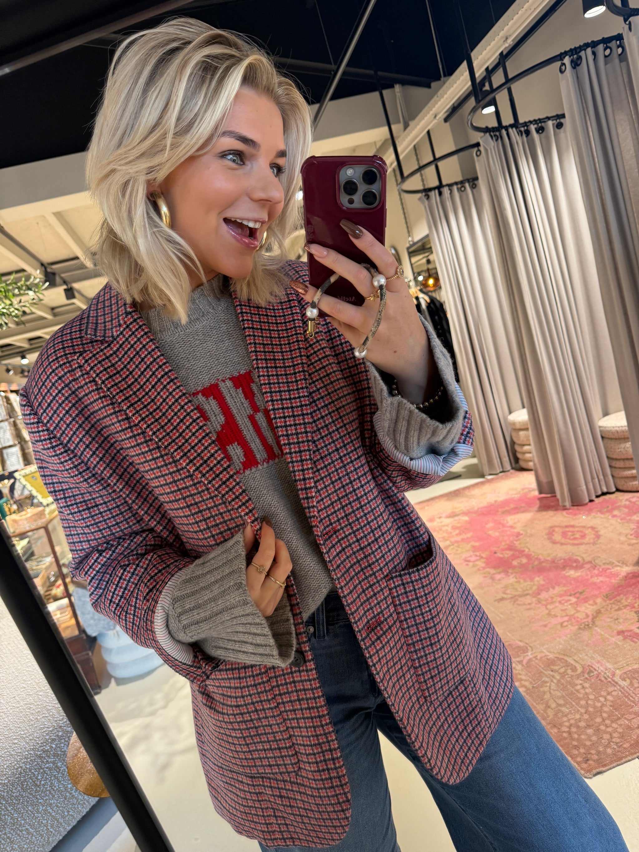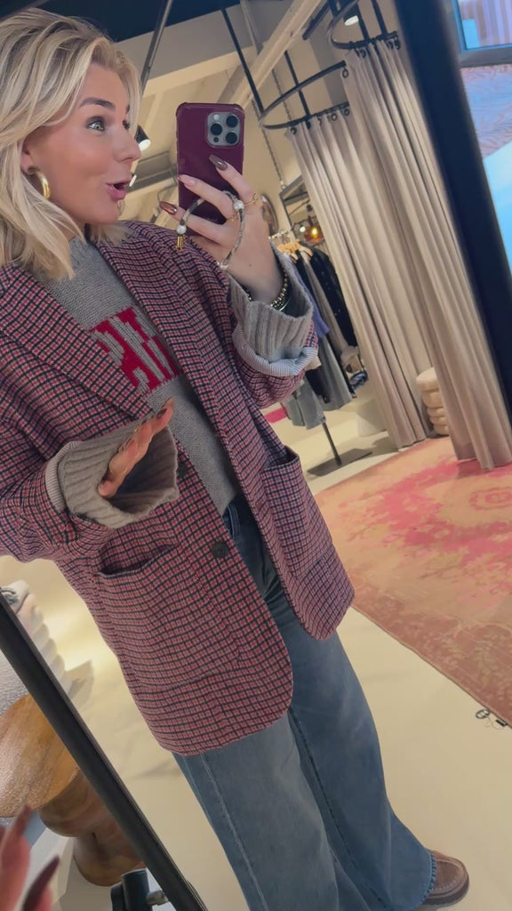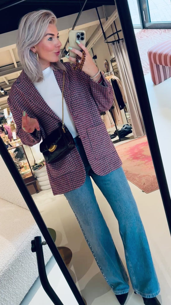 Elegante oversized jas met prachtige ruiten en fijne zakken. Deze jas heeft lange mouwen met knopen en kan aan de voorkant worden gesloten met twee knopen.