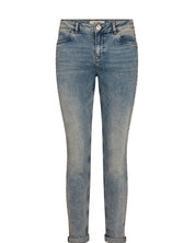 Coole lichtblauwe denim jeans in een flatterende regular fit met halfhoge taille en een vleugje stretch om de hele dag zijn vorm te behouden.