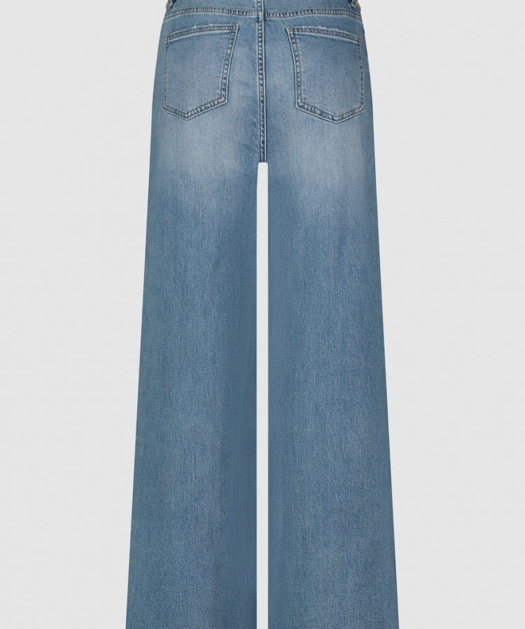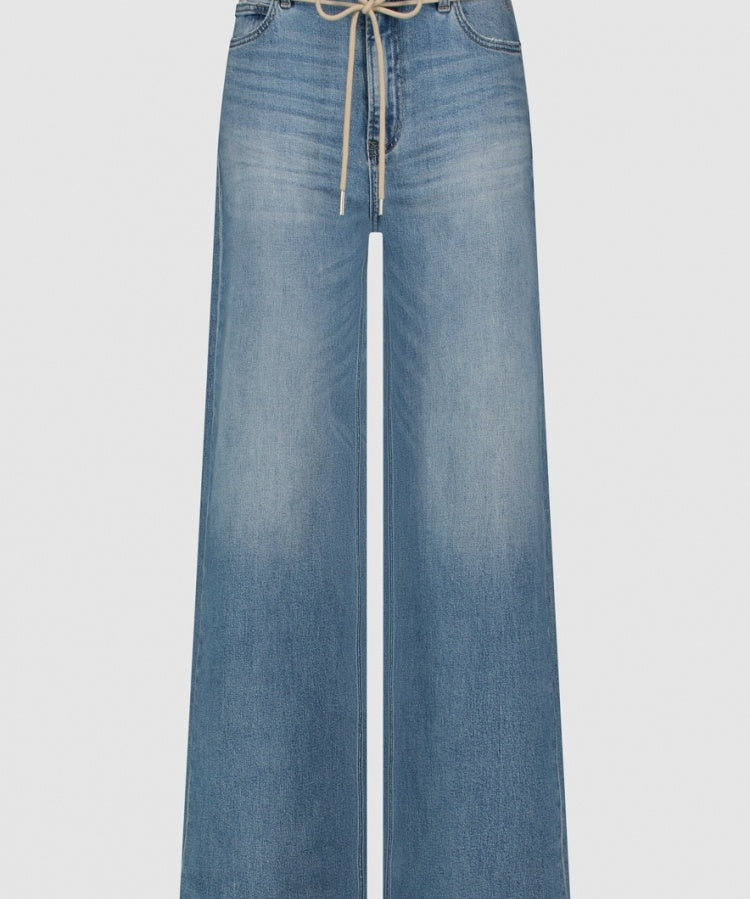 Wide leg mid-rise jeans met een vleugje stretch voor dames. De Jona jeans heeft een 5-pocket design en is voorzien van een stoffen ceintuur. Uitgevoerd in een blauwe tint met een opvallende fade.