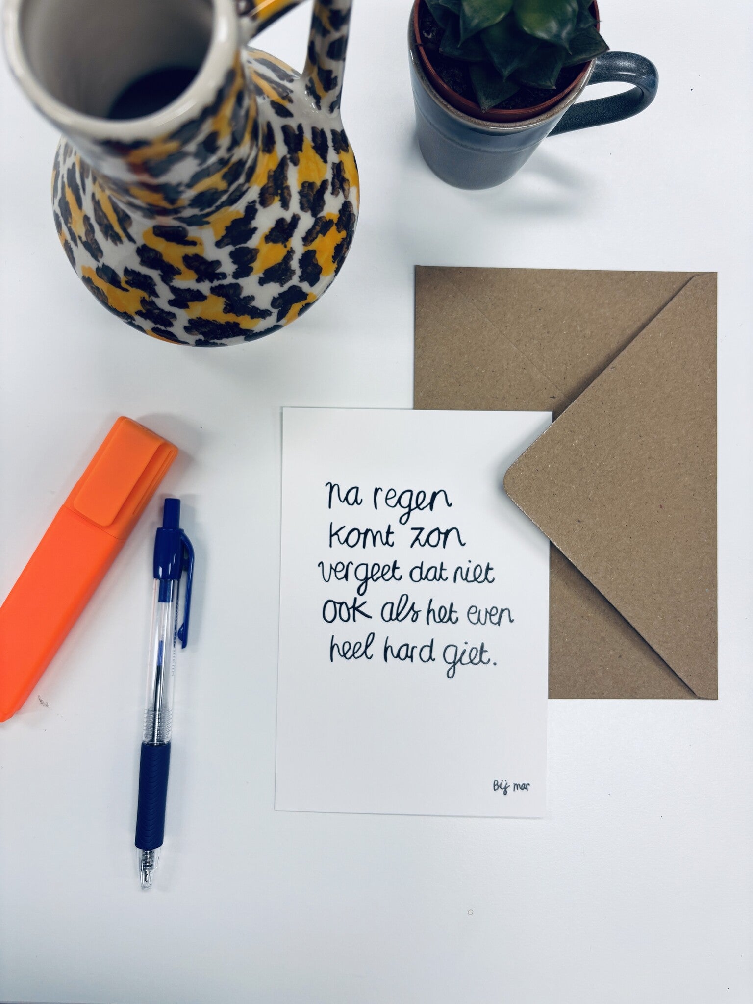 Formaat: staand formaat kaart: 105x148mm - inclusief gerecyclede craft envelop: 114x162mm.
